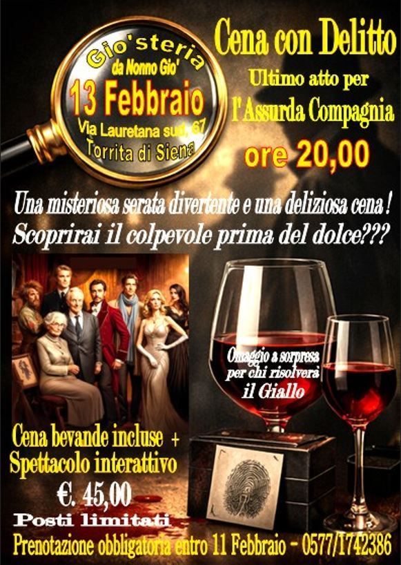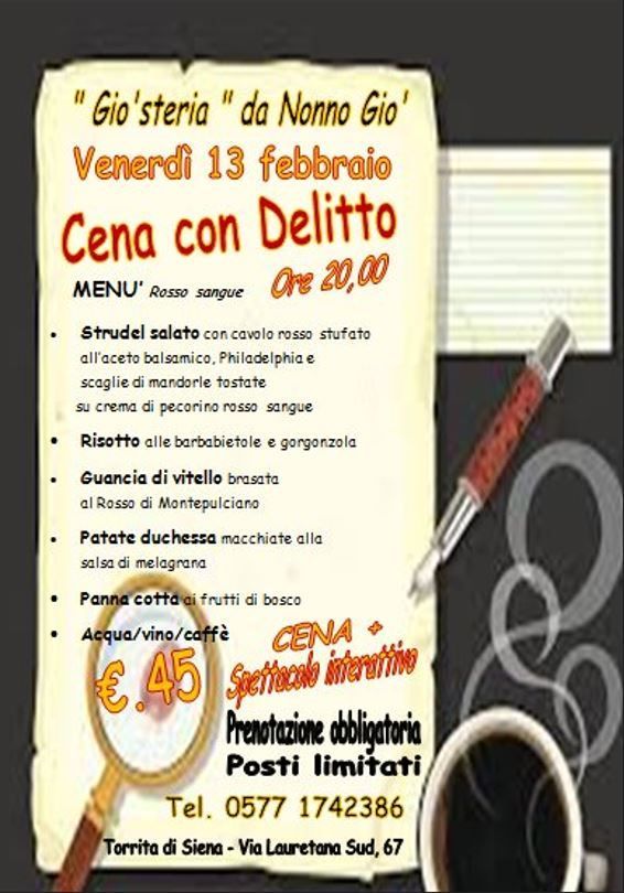 Prenota oraVenerdì 13 Febbraio Cena con delitto