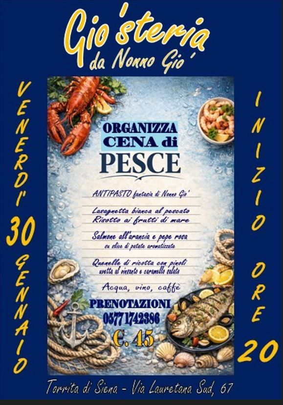 Venerdì 30 Gennaio Cena di pesce